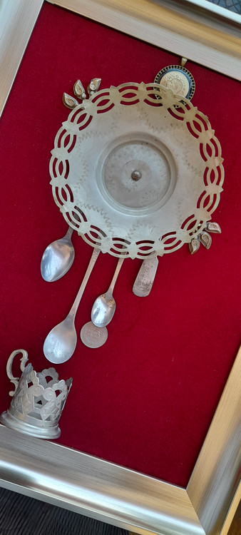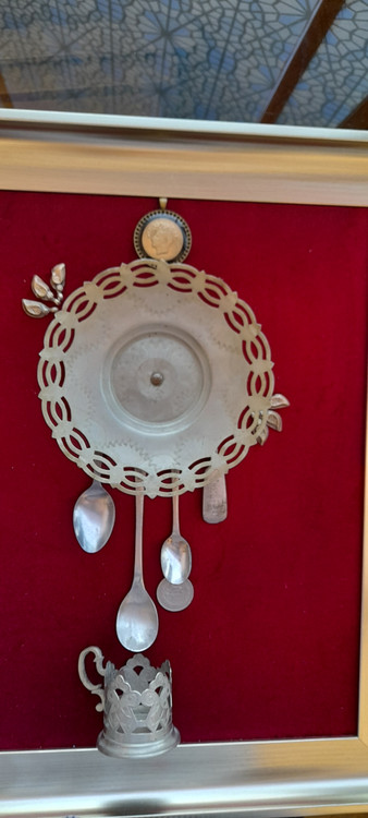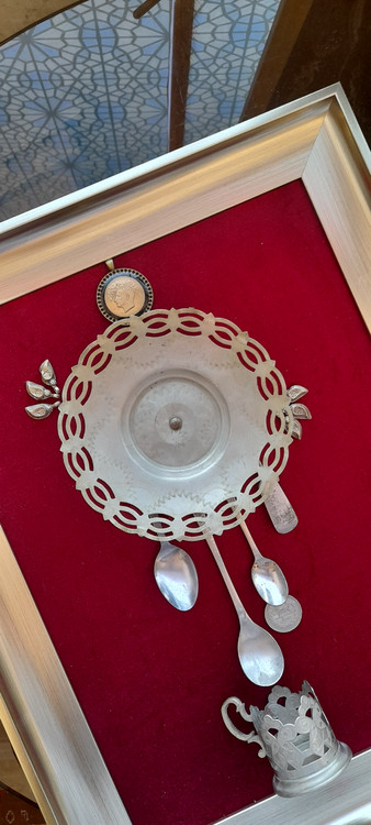 ظروف داخل تابلو با قدمت بالای ۶۰ سال و جنس ظروف برنج هست