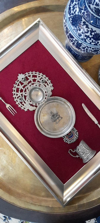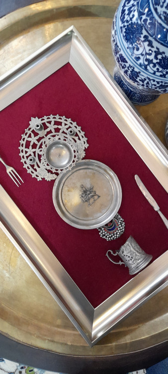 جنس ظروف داخل تابلو تماما برنج هستند و با قدمت بالای ۶۰ سال