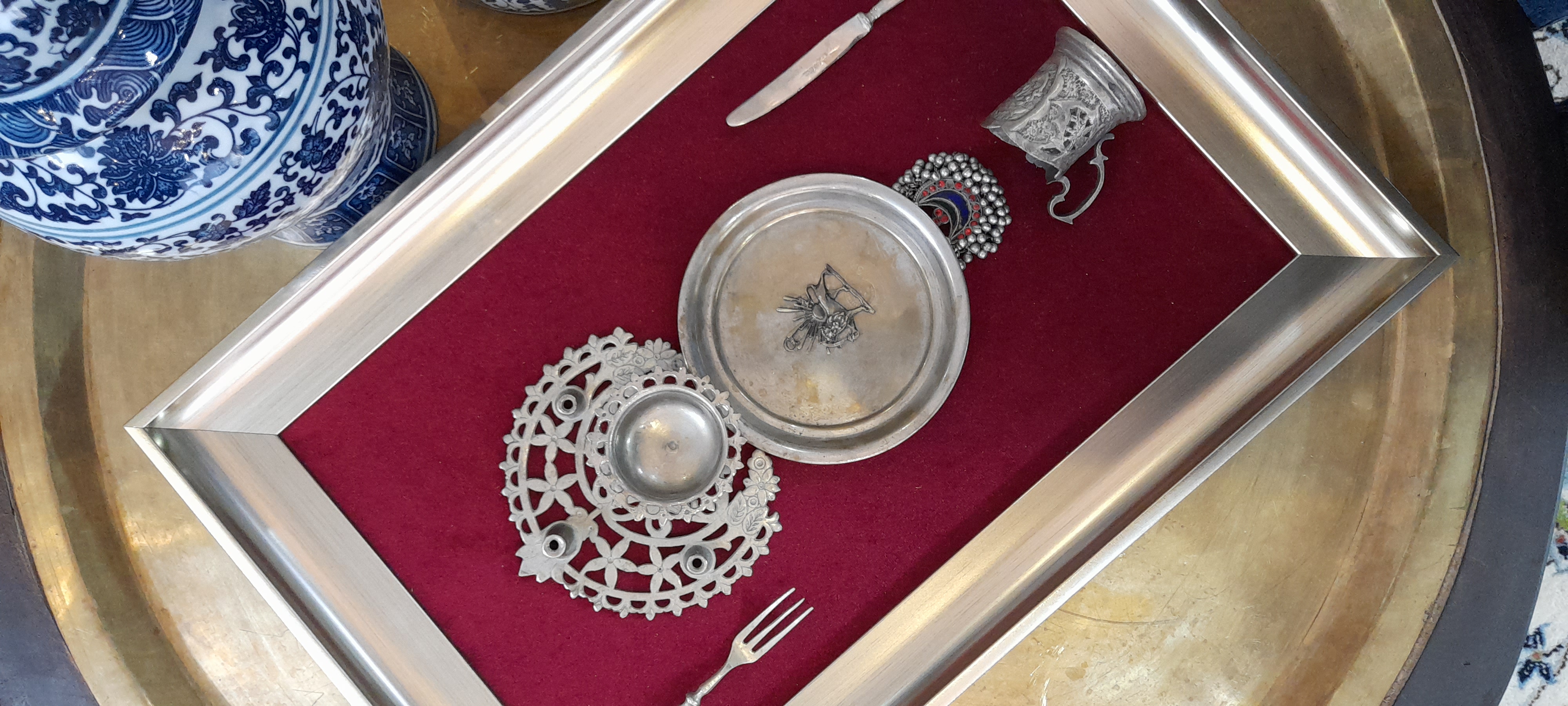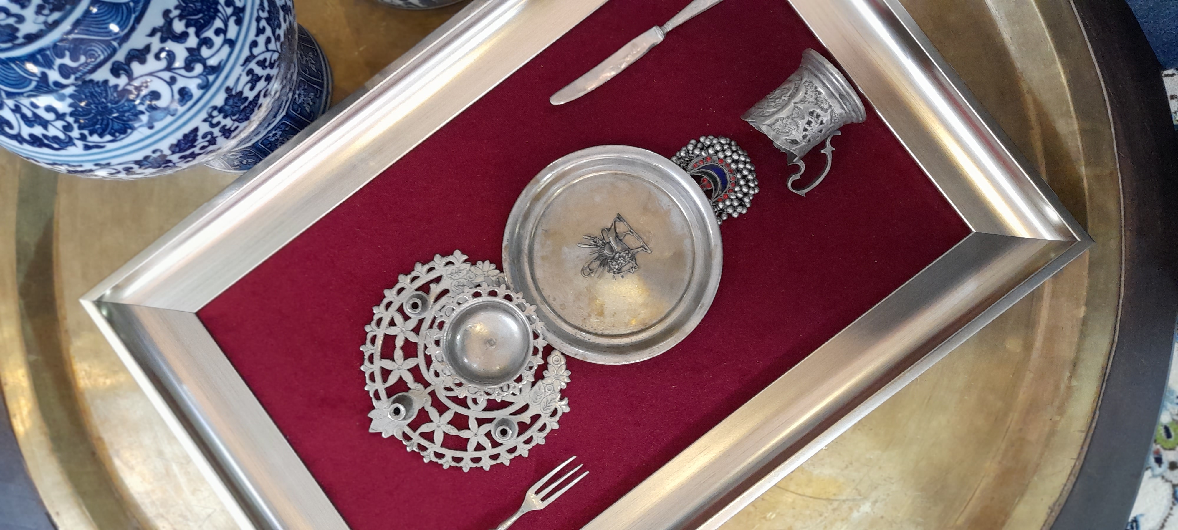 جنس ظروف داخل تابلو تماما برنج هستند و با قدمت بالای ۶۰ سال